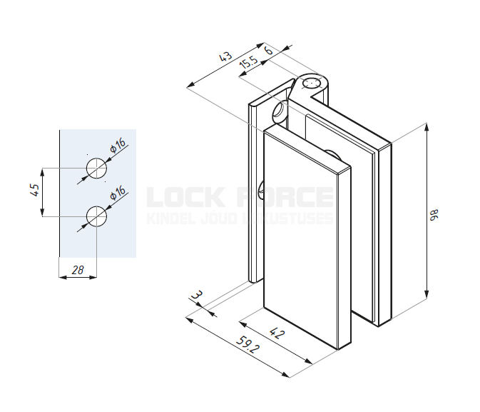 DOOR HINGE SET CDA PALERMO TGCR312 SC