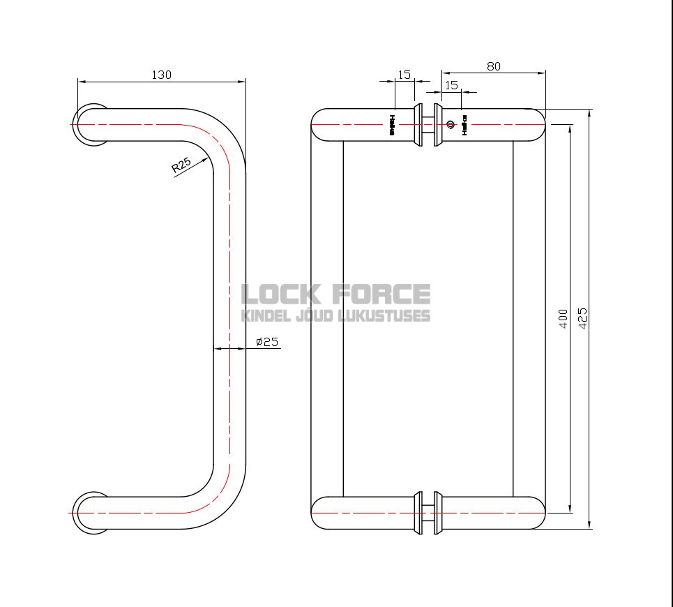 - Length(distance between handle mounting centers): 400 mm