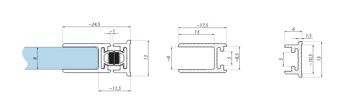 UKSEPROFIILID + MAGNETIGA TIHEND 8 MM KLAASILE, KLAAS-SEIN/KLAAS-KLAAS 90°