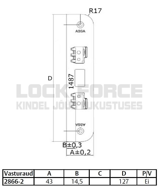 STRIKER PLATE ASSA 2866-2 FOR ROLLER LATCH LOCK